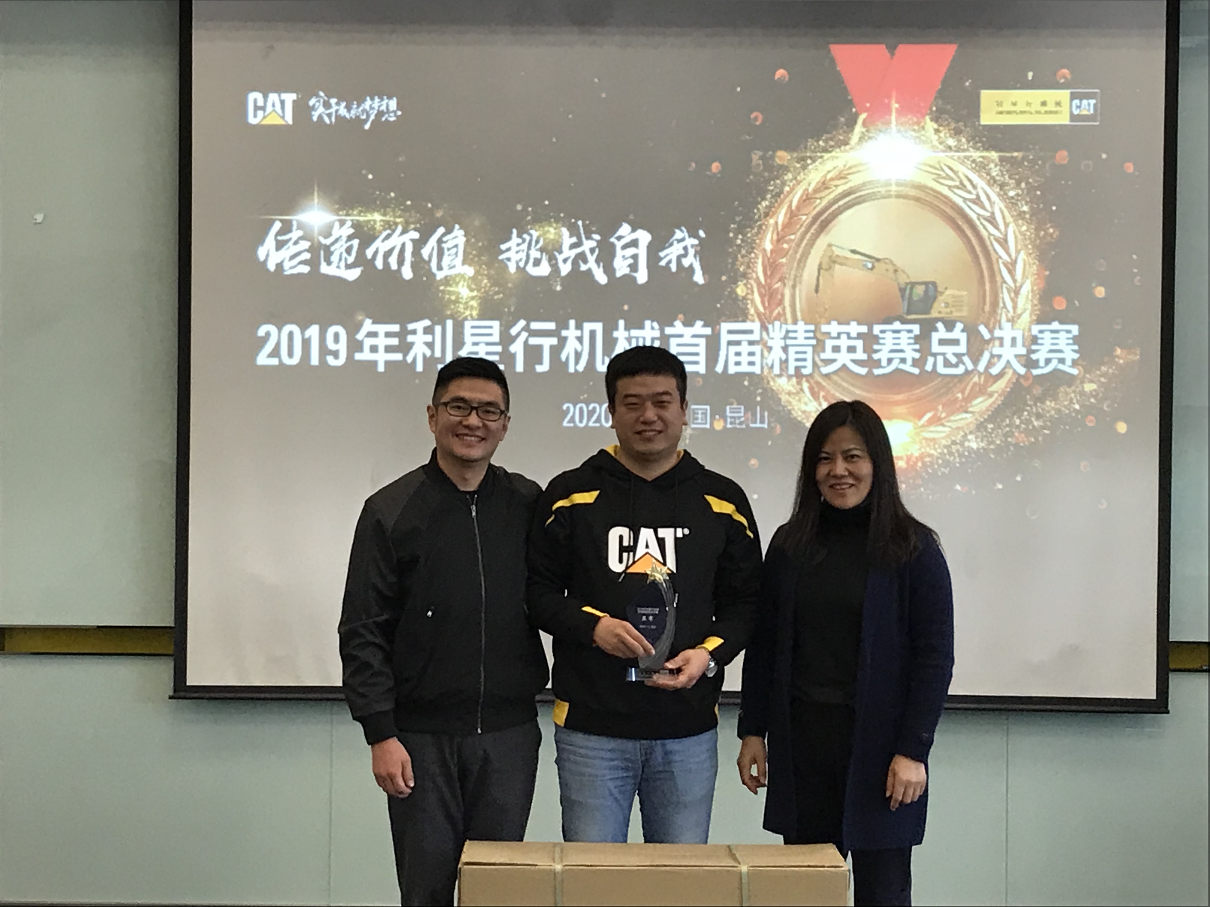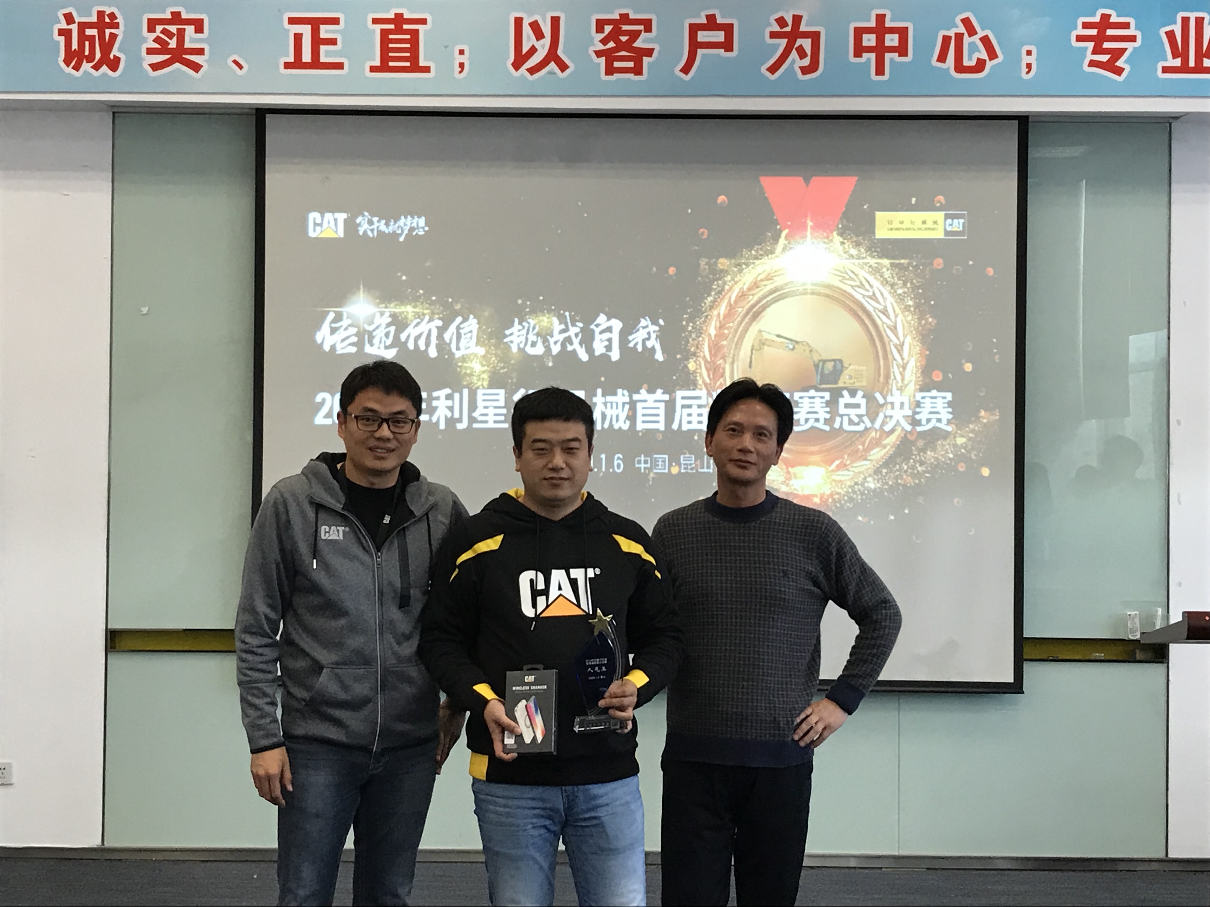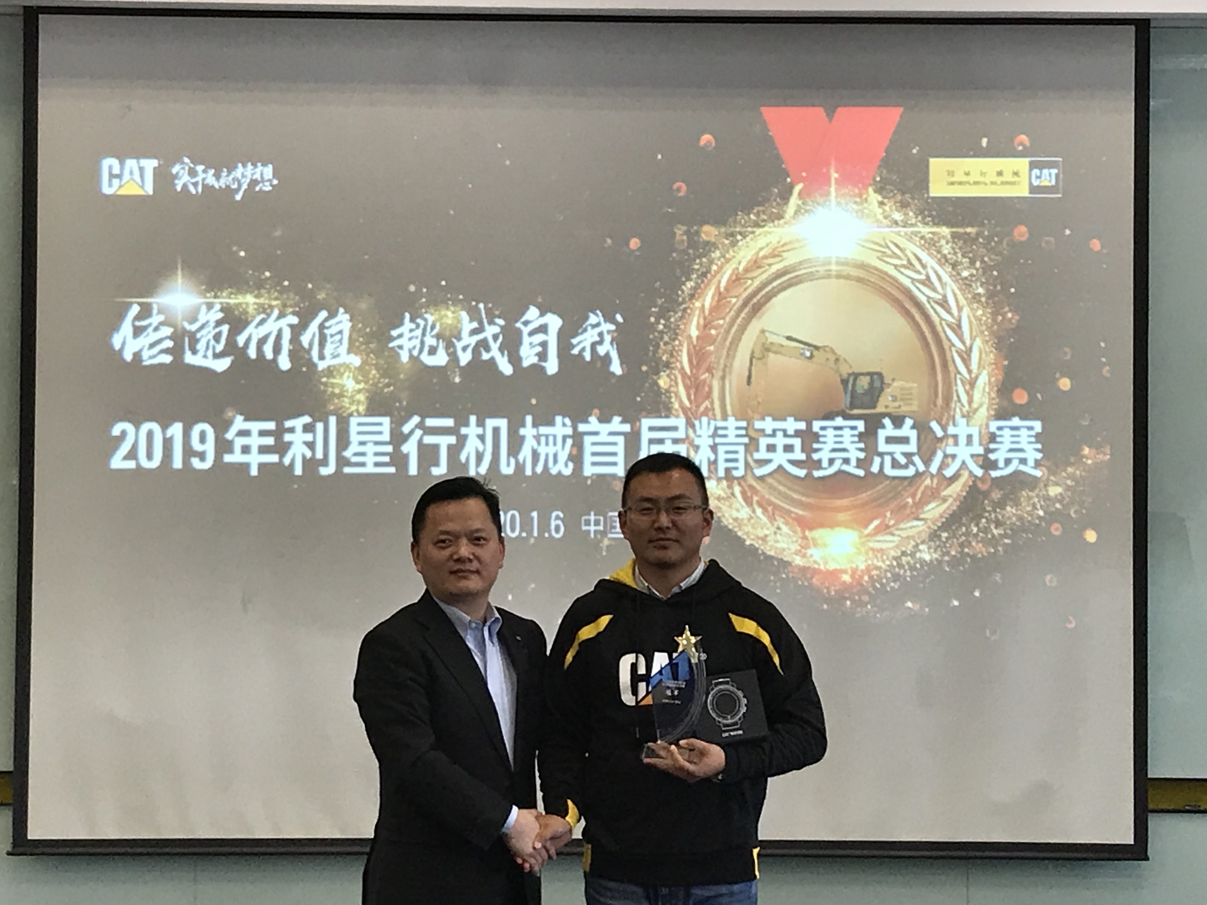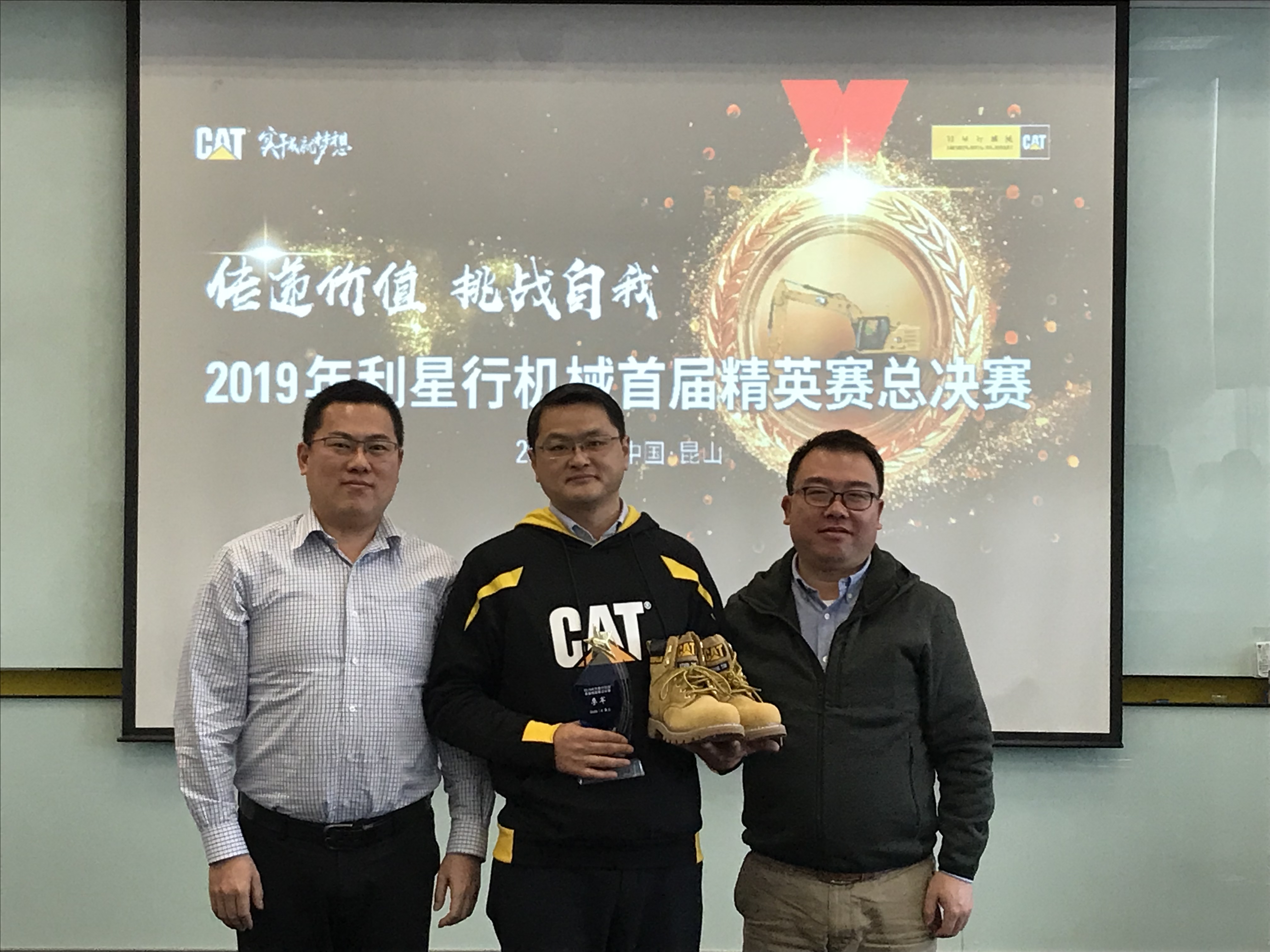 現(xiàn)場比賽季軍獲得者:安徽靳朝中,獎品:卡特大黃靴,大賽評委桑子博(卡特彼勒BCP產(chǎn)品經(jīng)理)及解軍(卡特彼勒GCI 產(chǎn)品經(jīng)理)進(jìn)行了頒獎。